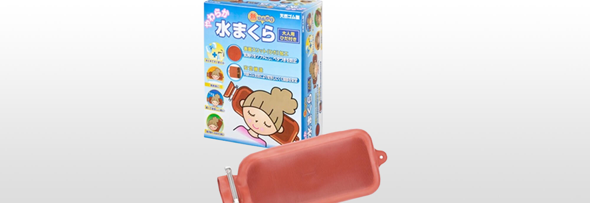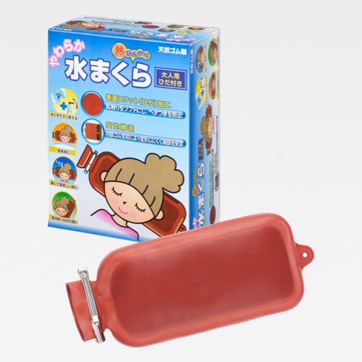 天然ゴム製の水まくら。弾力性があるだけでなく、くぼみ構造で頭部をしっかりとサポートしてくれます。