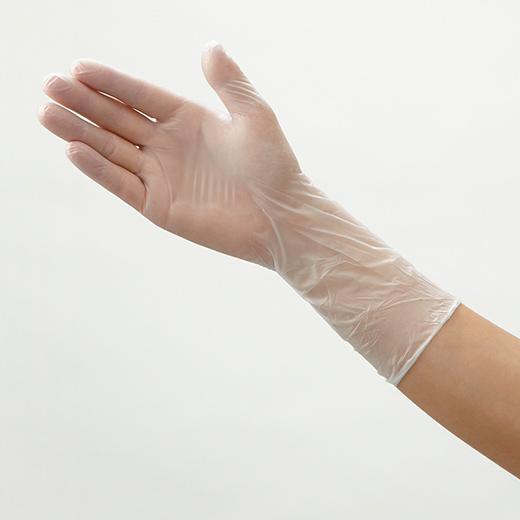 ニトリルゴム製手袋。ゴムアレルギーの方も安心してお使いいただけます。