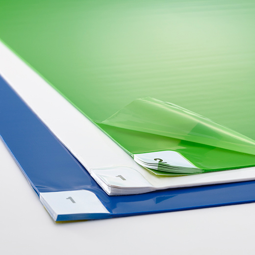 工場や倉庫、事務所など出入口に設置し、靴底のチリやホコリを吸着する粘着マット。30枚の積層構造で、手で剥がせばすぐに新しいマットに蘇ります。