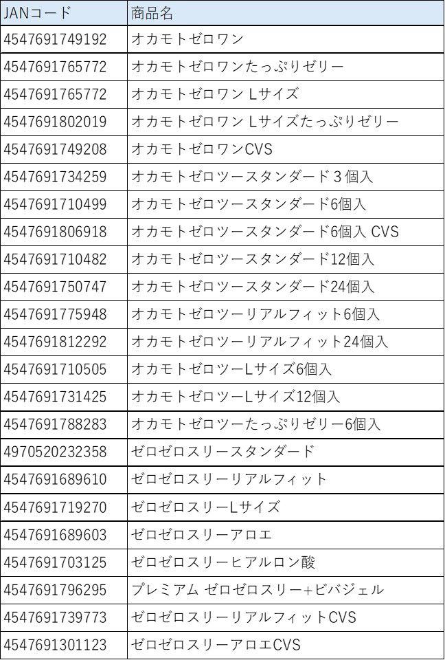 ※JANコード及び商品名は以下の該当商品リストをご参照ください。