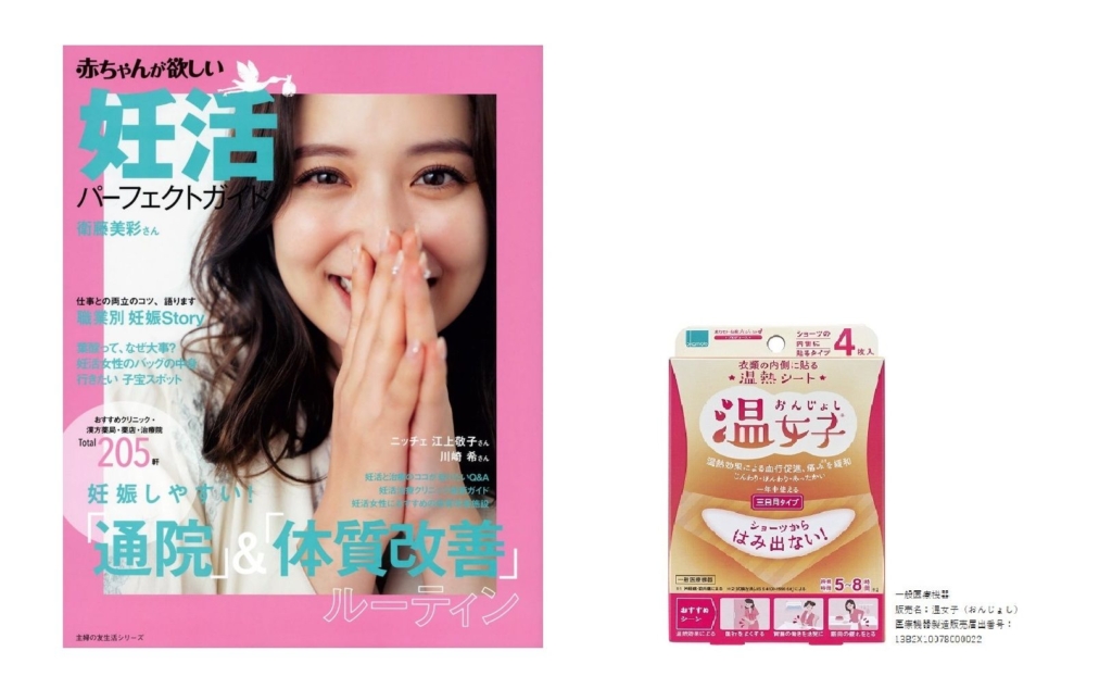 主婦の友社より発行されている雑誌『赤ちゃんが欲しい 妊活パーフェクトガイド』(12月18日発売)「RECOMMENDED ITEM」にて”お腹や腰を温めて血行促進ができる”と「温女子」が紹介されました。