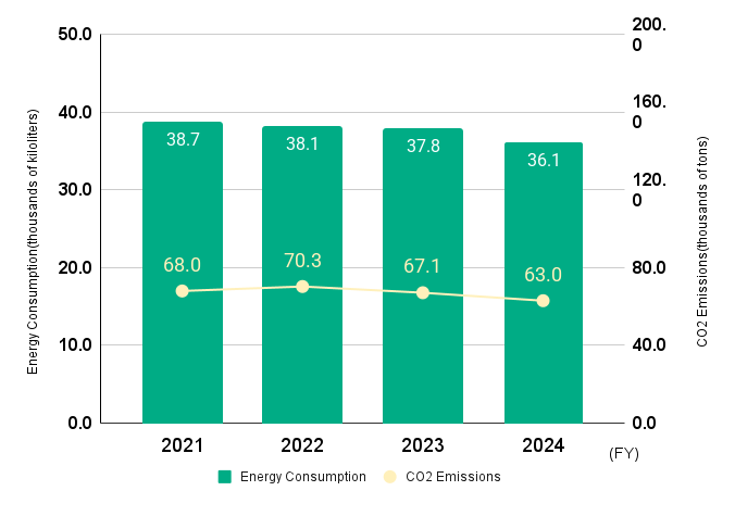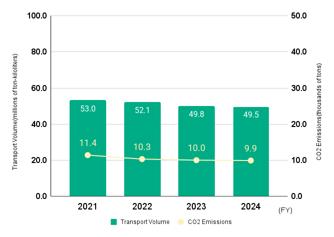 We are attempting to improve transportation efficiency through such efforts as changing modes of transportation and promoting a modal shift, and are working to reduce energy consumption in an effort to reduce carbon dioxide emissions generated by transportation.