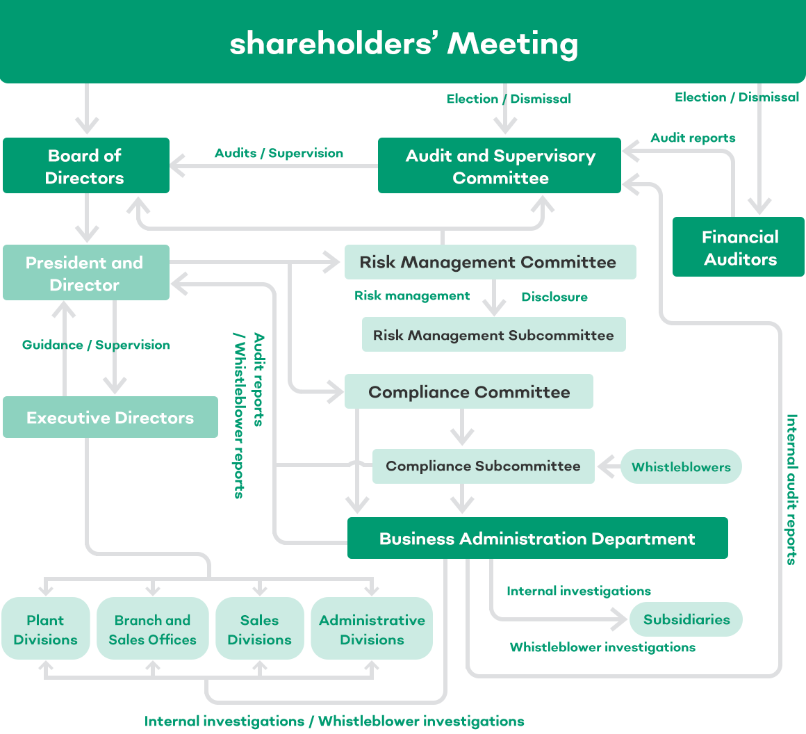 In order to continue to be a sustainable company that embodies this five-part philosophy, we understand the need to gain the trust of various stakeholders—our customers, our suppliers, our employees, our shareholders and our local communities—and the importance of striving for flexible and responsive decision-making and to strengthen our corporate governance.