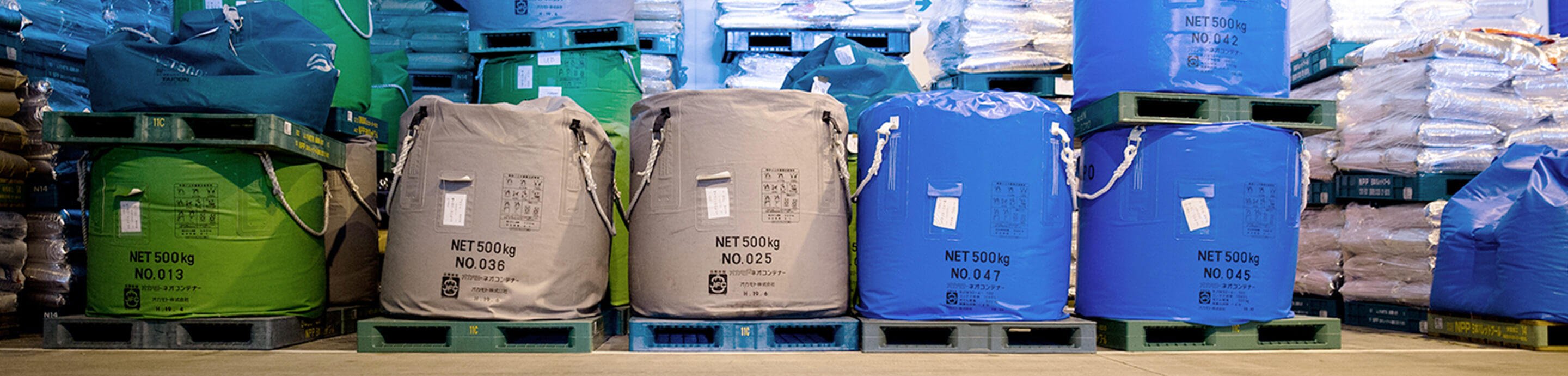 ポリ塩化ビニルやポリエチレンといったプラスチック、塩化ナトリウムや塩化カルシウムといった化学品・家畜用飼料・肥料・汚染廃棄物などを効率的に運搬するために使用するフレキシブルコンテナを製造・販売しています。