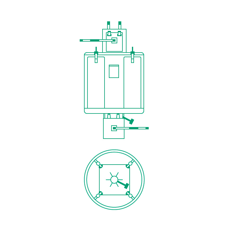 内容物や保管方法に応じた角型・丸型の2タイプがあり、それぞれ投入口だけの取り付け、また投入口と排出口の双方を取り付けることもできます。