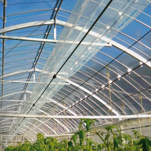 - 更にコストを抑え、透明性・無水滴性・保温性もバランスよく備えた、中短期展張型外張り用フィルムです。
