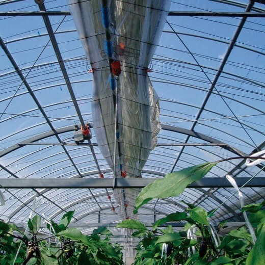 - 従来の農ビの弱点であったベタツキを抑え、換気作業を効率的に行うことができます。