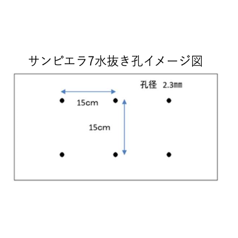 - サンピエラ7クールに有孔加工をした、内張カーテン用のフィルムです。 孔径2.3mmの水抜き孔付きで、カーテンに水が溜りにくくなっています。(左図図参照) フィルム面がサラサラしているので、開閉時の作業性に優れています。