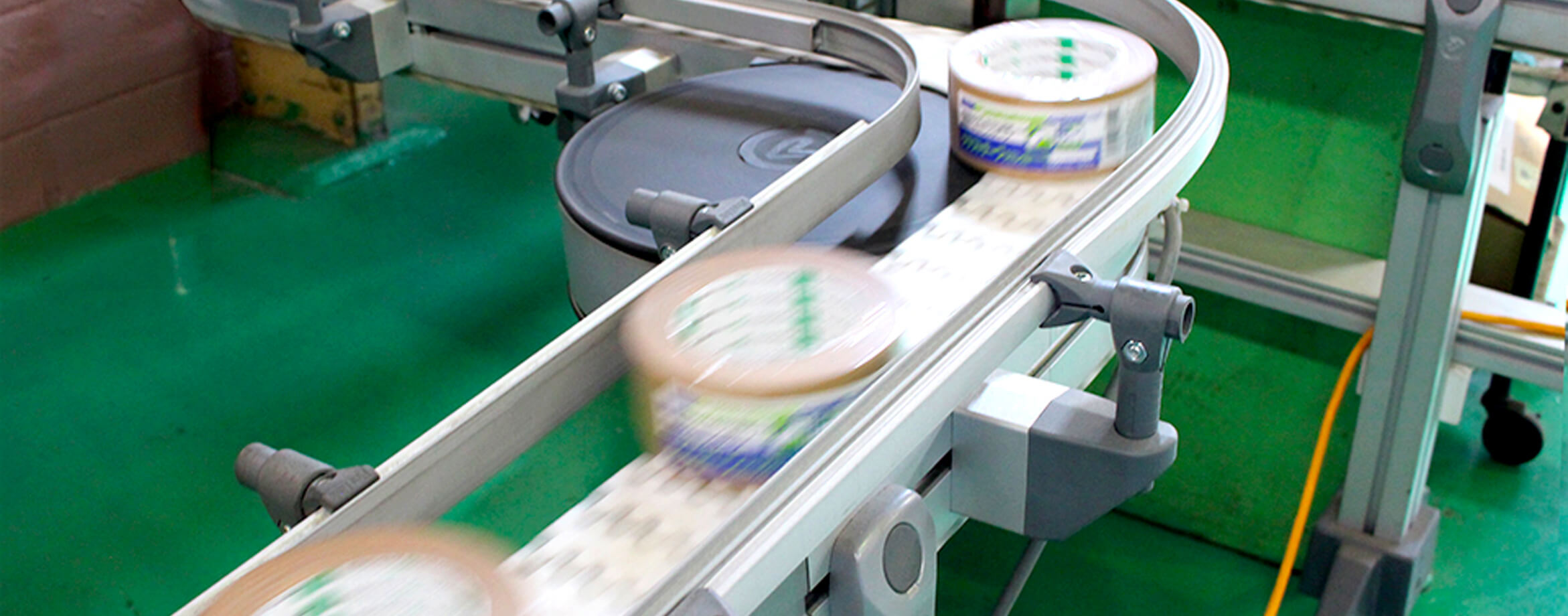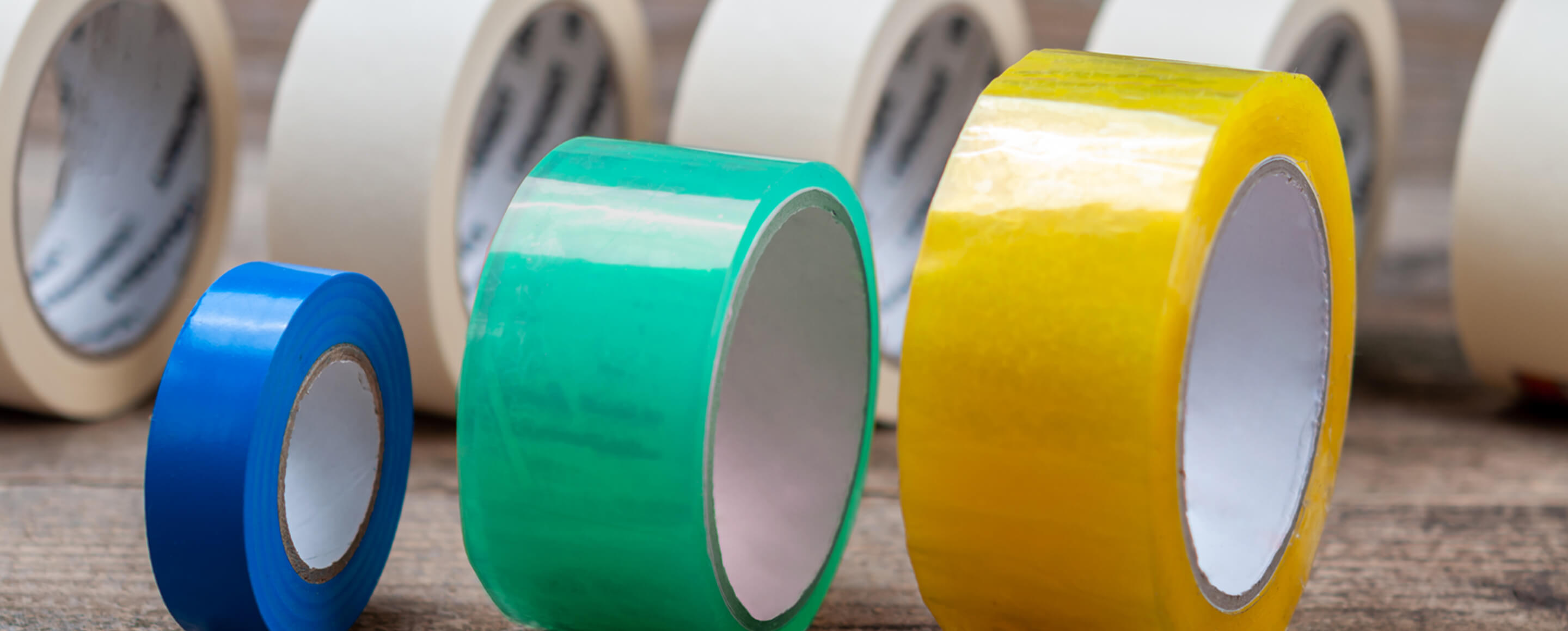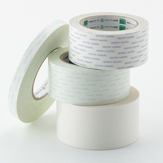天然ゴムをはじめとした様々な粘着剤を薄く、均一に塗布する技術を駆使。クラフト紙・不織布・プラスチックフィルムなどの基材に最適な粘着剤を組み合わせ、各種テープを生産しています。