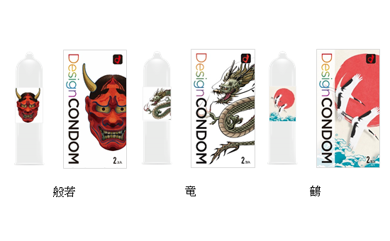 「デザインコンドーム」は、コンドーム自体に絵柄をプリントしたデザイン重視の商品です。訪日外国人の方々にも人気の「ジャパニーズカルチャー」をテーマに般若、竜、鶴などをコンドームにプリントした商品です。皆様が手に取り易く、コンドームを身近でおしゃれなアイテムの一つと感じていただける商品に仕上げました。