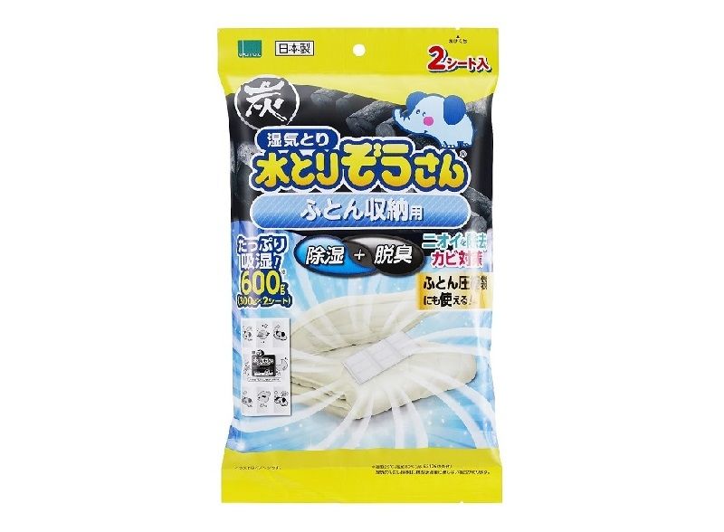 使わなくなった布団を押し入れやクローゼットに収納する際、保管が長期にわたる場合は湿気の影響を受けやすいことから、「水とりぞうさん®」タンクタイプを設置していただくことで 軽減できますが、さらに湿気の影響をより効果的に軽減させる新製品が「水とりぞうさん® ふとん収納用」です。