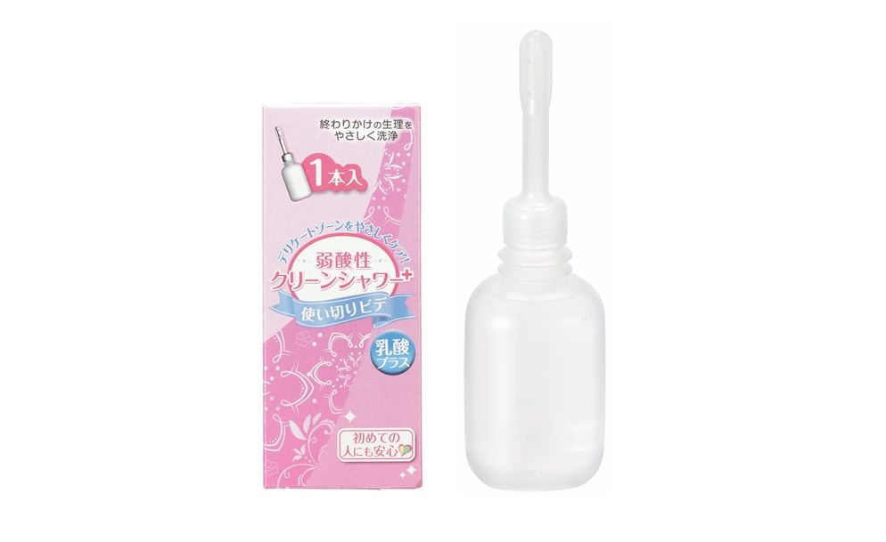 使い切りビデ「弱酸性クリーンシャワープラス」は弱酸性の洗浄液で膣内をやさしく洗浄します。丸いノズルで初めての方にも安心です。