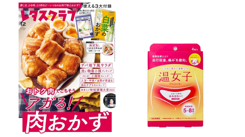 株式会社KADOKAWAより発行されている雑誌『レタスクラブ』2024年11月25日発行の「ほぼ3000円以下のあったかアイテム」特集にて”冷えやすいお腹をしっかり温めることができて安心”と温熱シート「温女子(おんじょし)」が紹介されました。
